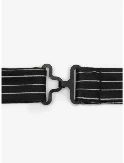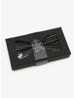 This classic striped bow tie is a must have for any Jack Skellington fan. Featuring white stripes on a simple black background, this 100% silk bow tie will get your Halloween event off to a stylish start. Officially licensed by Disney. Approximately 4 3/4″ x 3″ and pre-tied.