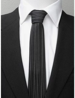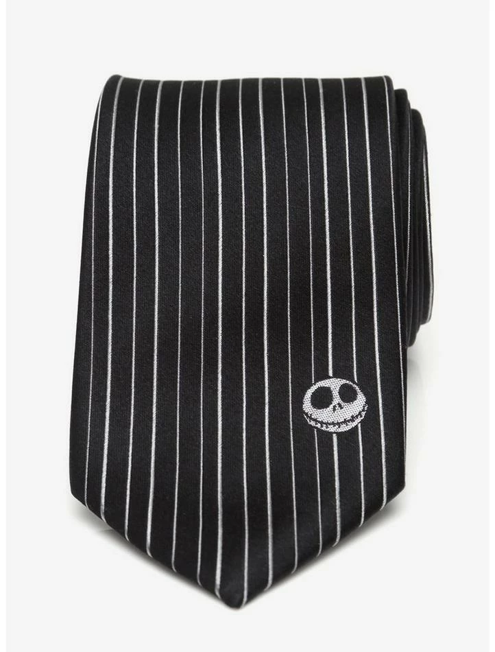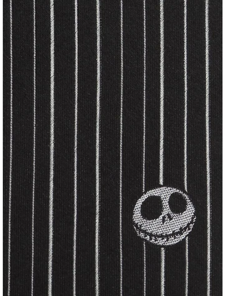 Simple yet striking, this tie will not disappoint fans of The Nightmare Before Christmas. Bold white stripes and a black background offset a discrete Jack Skellington motif, while our 100% silk fabric ensures a smooth texture and knot. Officially licensed by Disney. Approximately 59″ length and 3″ width.