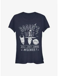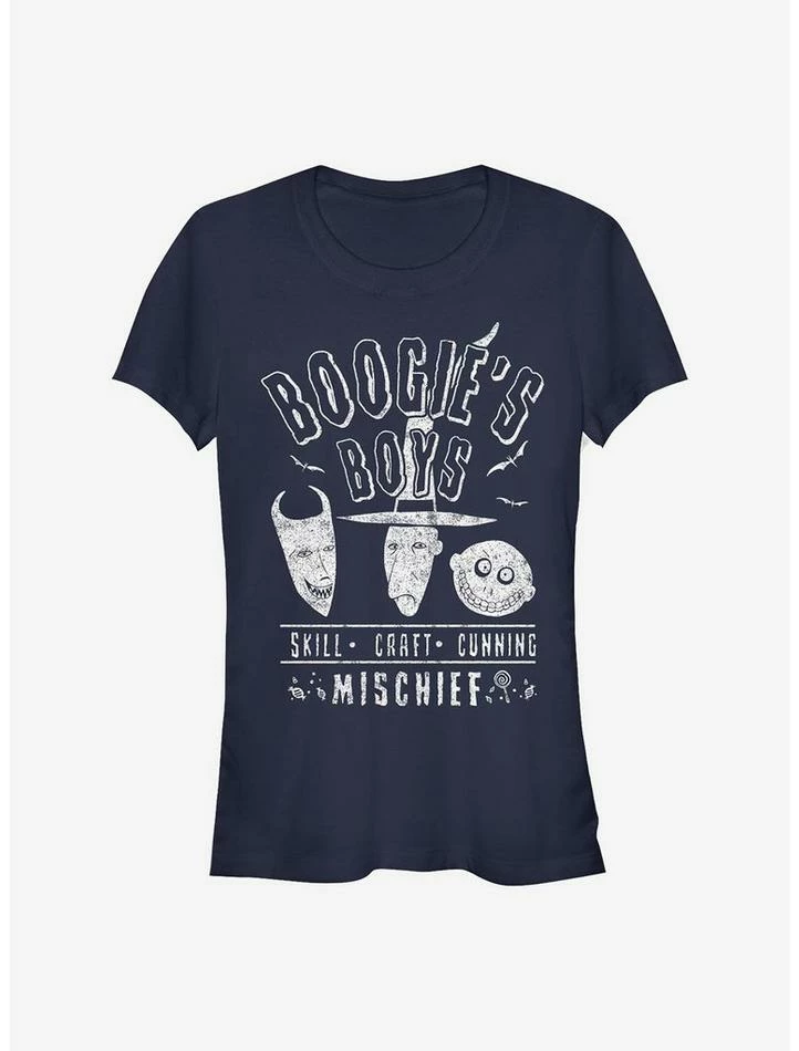 When we throw out words like Skill, Craft, Cunning and MISCHIEF — who comes to mind? Boogie’s Boys, that’s who! This fitted, lightweight tee takes inspiration from Oogie Boogie’s henchmen from The Nightmare Before Christmas: The infamous trick-or-treating trio, Lock, Shock and Barrel.