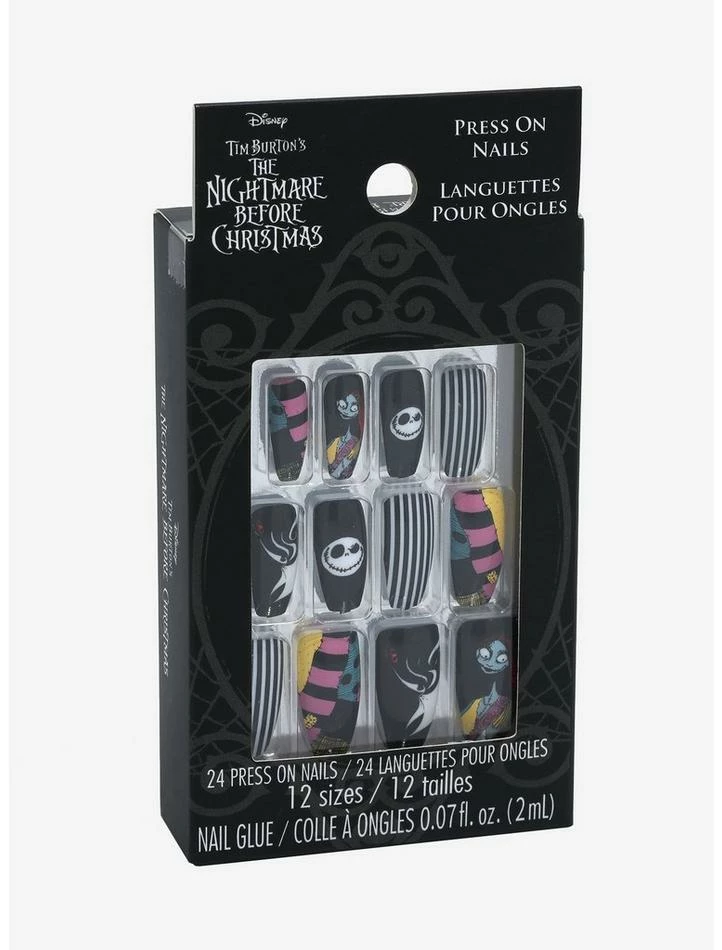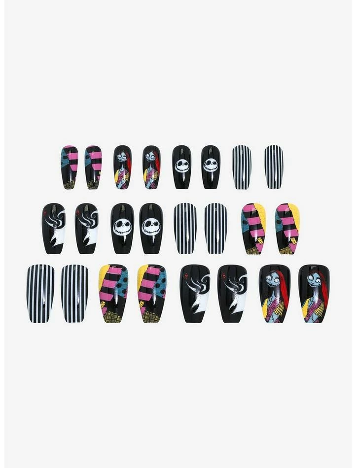 Have the cutest manicure in all of Halloween Town with these press on nails! We’re definitely asking Sandy Claws for these. This set has 24 nails filled with designs of Jack, Sally and Zero, plus pinstripes and patchwork designs on 12 different sizes.