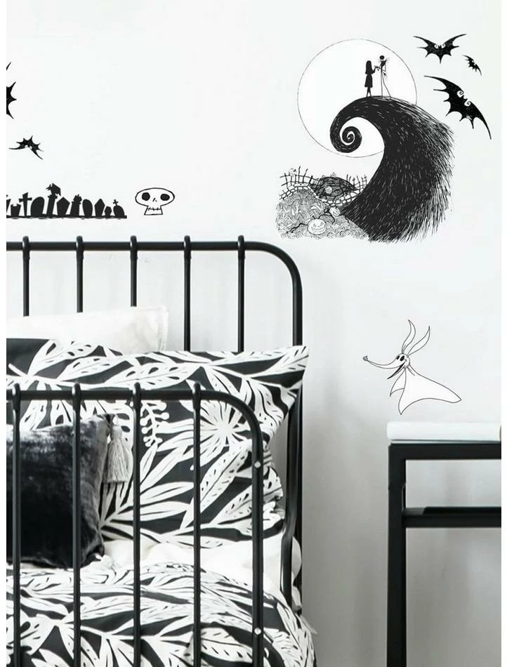 Decorate walls with The Nightmare Before Christmas Jack and Sally Peel and Stick Wall Decals. Complete with 39 decals, this wall sticker set is a fun and creative way to transform any room in seconds. To apply, simply peel and stick decals to any smooth, flat surface. Remove, reposition and reuse as often as needed. Created with high quality vinyl thatโs made to last, walls stay completely safe, and sticky residue is never left behind. Itโs fast, fun and affordable wall decor at itโs best.