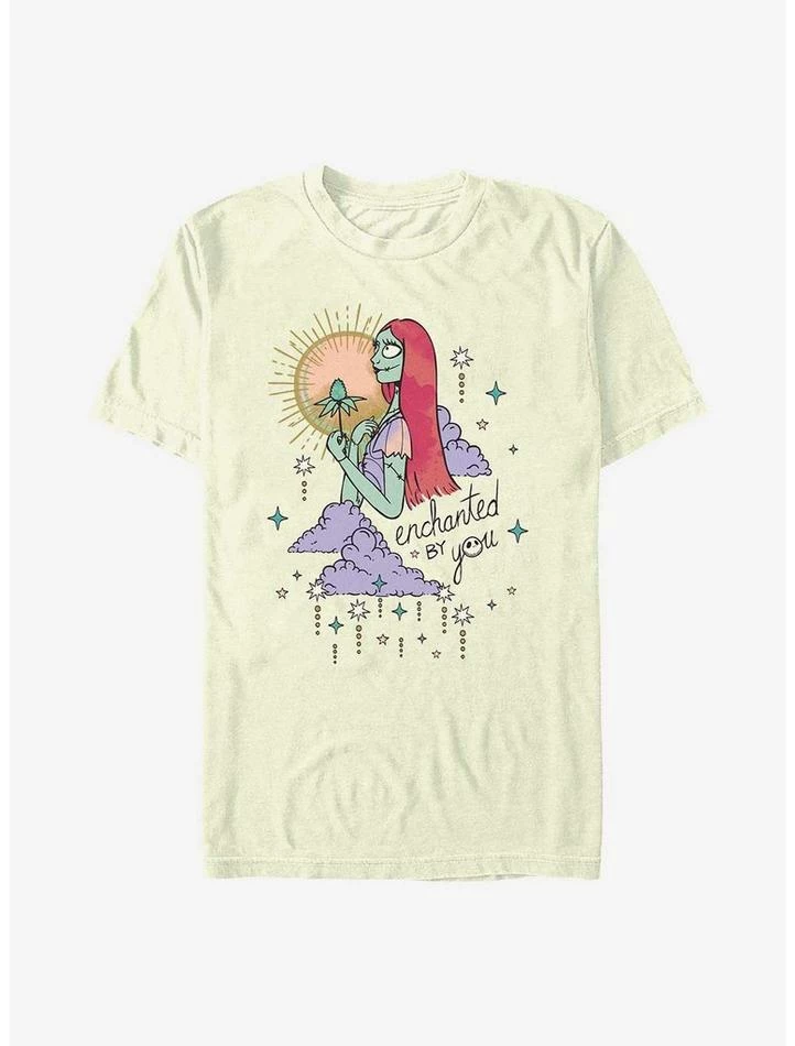 This rag doll’s in love! Our lightweight natural-colored tee — inspired by The Nightmare Before Christmas — features a celestial Sally daydreaming of her bone daddy, Jack. “Enchanted by you.”
