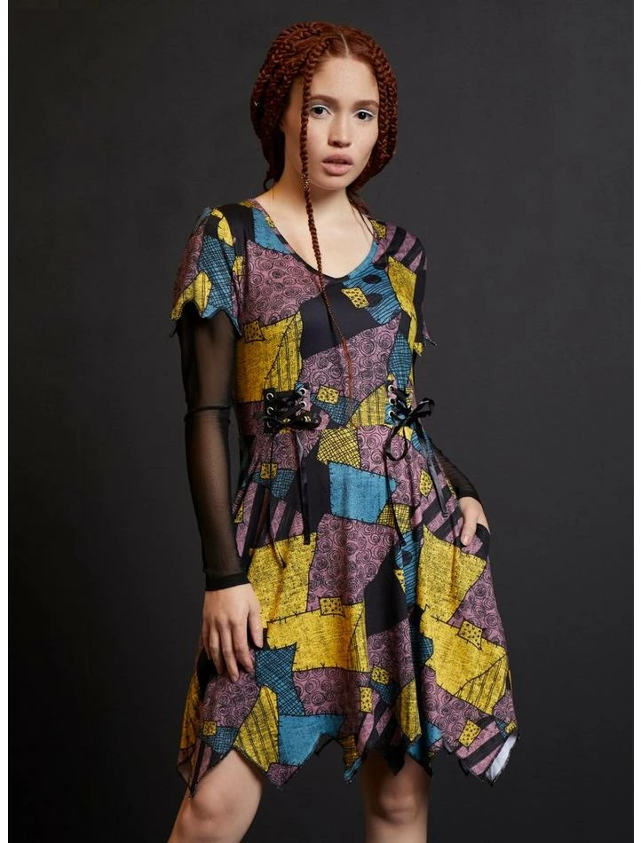 Need an upgrade from your rags, rag doll? This long-sleeved dress from The Nightmare Before Christmas will set your look right! Inspired by Sally’s dress, it features long mesh sleeves and black lacing on the sides and hip pockets.
