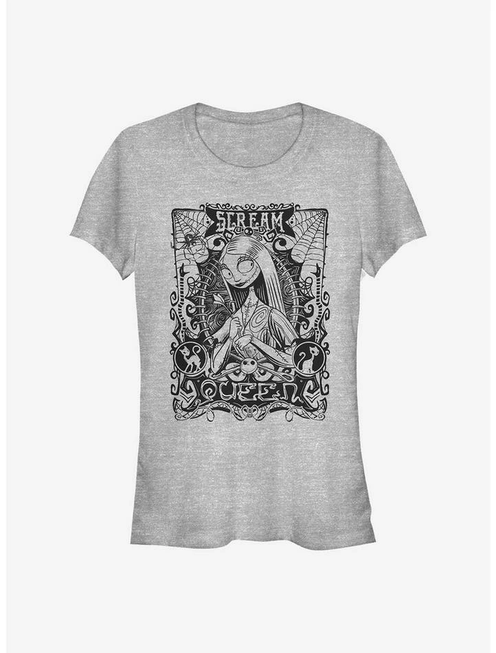 We stan our Scream Queen! This fitted, lightweight heather grey graphic tee — inspired by The Nightmare Before Christmas — features Sally in an art nouveau-style design, with spiders, webs, cats… and of course, Jack.